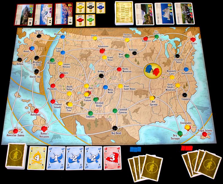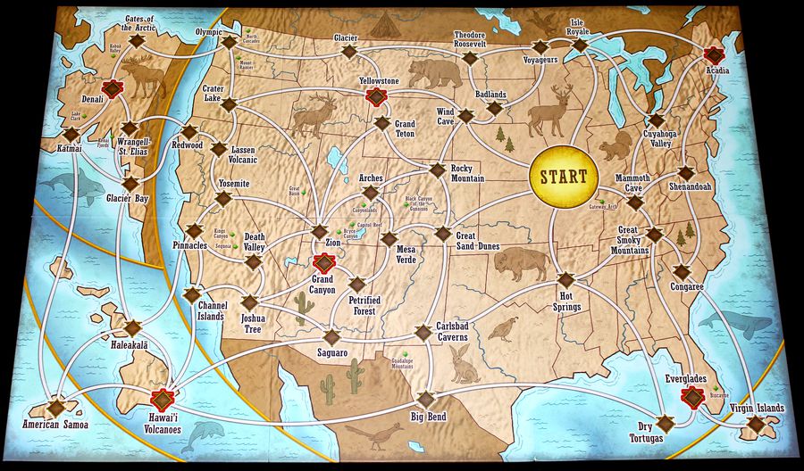Trekking the National Parks is an award-winning family board game that celebrates the U.S. national parks in a fun and competitive way. Players compete for points by claiming park cards and collecting trail stones as they travel across the map experiencing the wonders at each of these magnificent landscapes.