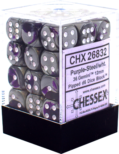 CHX 26832 Purple-Steel / White Gemini 12mm d6 Dice Block (36 Dice)